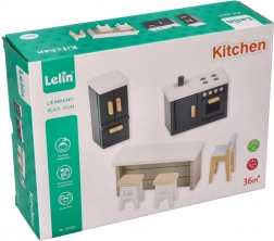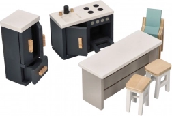 Træd ind i fantasiens verden med vores køkkenmøbler til dukkehuset. Dette charmerende sæt indeholder: