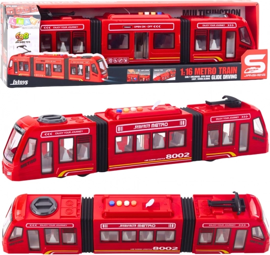 Metroens lys- og lydeffekter aktiveres med knapper på taget. De simulerer realistiske kørselslyde og blinkende lys, hvilket beriger hver tur. De bevægelige led gør det muligt for metroen at bevæge sig i sving som et rigtigt flerdelt tog. Åbne døre øger realismen, så man kan “stige på” og “af” toget.