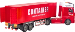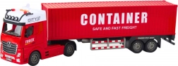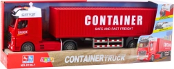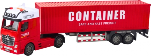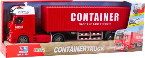 Den røde lastbil fra City Series er en detaljeret model til børn, der vil opleve virkelighedsnær transport. Den består af en trækker og en lang trailer med aftagelig container, hvilket er ideelt til leg med transportscenarier, lastning og losning eller egne logistiske scenarier.