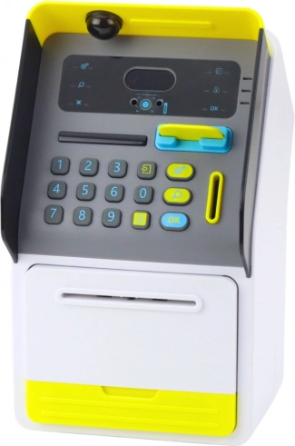 Legetøjs-pengeautomaten er udstyret med en PIN-kode og simuleret ansigtsgenkendelse, hvilket fremmer barnets kreativitet og fantasi. Betjeningen af automaten sker ved at indsætte kortet, hvilket gør det muligt at lege indbetalinger, udbetalinger og saldo-tjek.