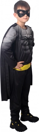 Dette unikke Edderkoppekriger-kostume er designet til drenge i alderen 6-8 år og giver dem en følelse af at være en superhelt. Det inkluderer en sort-grå heldragt med et edderkoppesymbol på brystet, som øger autenticiteten. Sættet indeholder også en sort aftagelig kappe og en komfortabel stof-maske.