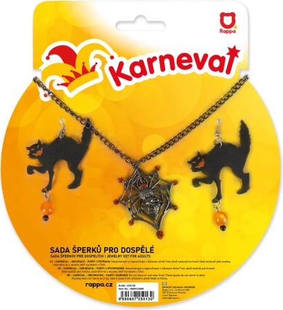 Opgradér dit uhyggelige kostume med dette mystiske smykkesæt, ideelt til Halloween eller heksefester. Sættet indeholder en elegant halskæde med en edderkop og øreringe med mystiske katte.