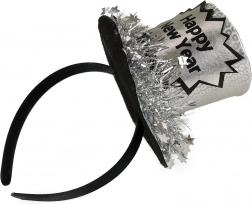 Fejr ankomsten af Nytåret med stil med denne sølvfarvede mini-hat fastgjort på en komfortabel hårbøjle. Dette elegante tilbehør giver dit outfit et festligt touch og vil helt sikkert tiltrække opmærksomhed til enhver nytårsfest.