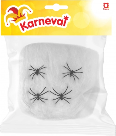 Den ideelle dekoration til Halloween-festen! Dette sæt indeholder et edderkoppespind og fire plastikedderkopper, som nemt kan placeres hvor som helst for en ekstra uhyggelig effekt.