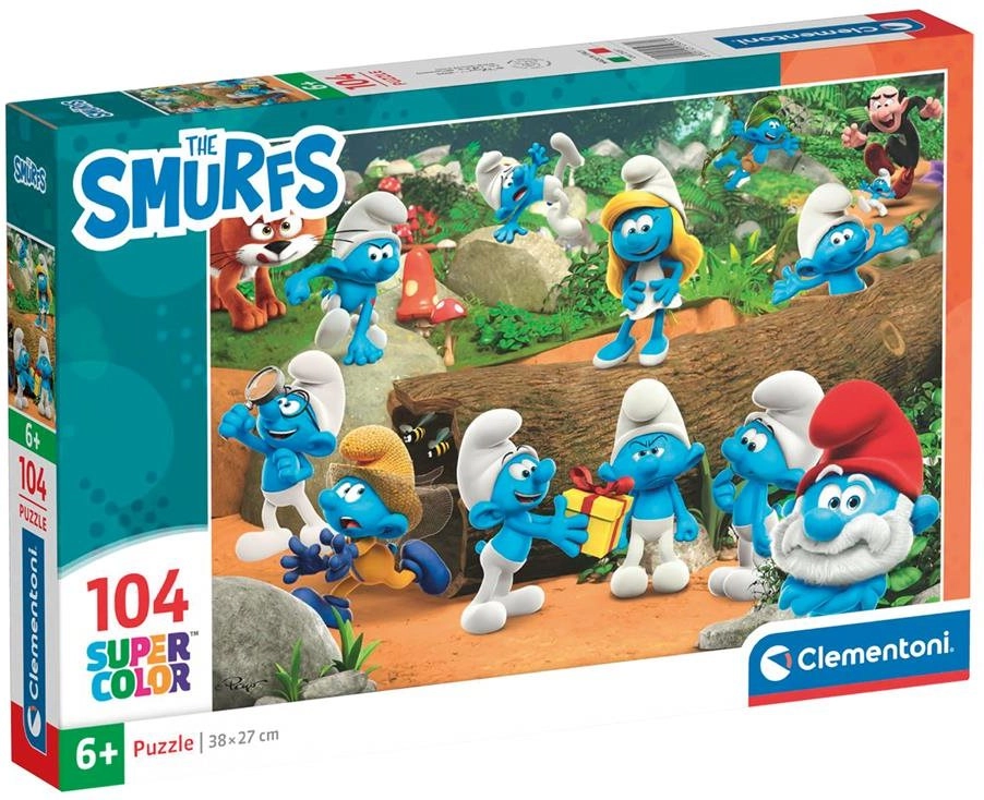Puslespil CLEMENTONI Smølferne bringer sjov for hele familien med et motiv fra den glade smølfeverden. Med 104 brikker er det ideelt for både børn og voksne, der søger en underholdende udfordring.