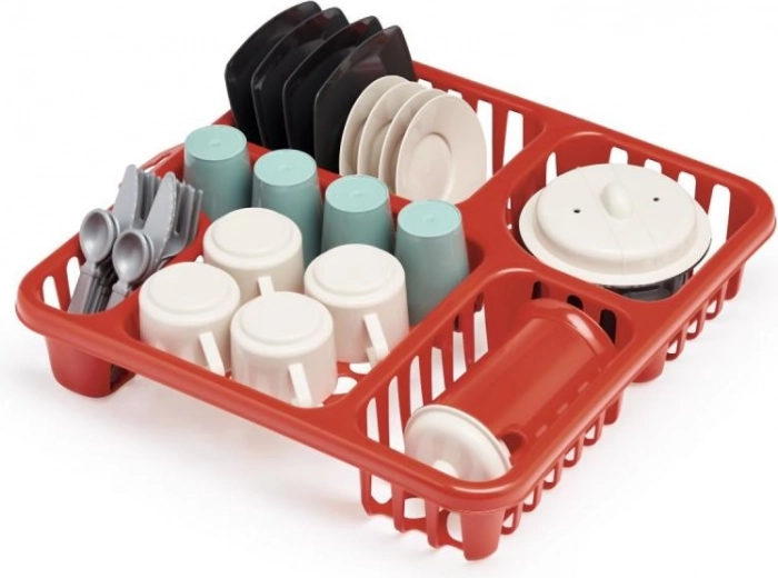 Dette børnesæt med køkkengrej og afdrypper gør hvert hjørne af køkkenet til et sted fuld af fantasi. Børnene kan fordybe sig i leg og efterligne voksne under madlavning og servering.