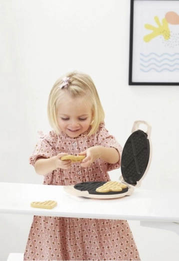 Børne vaffeljern med nødvendigt tilbehør gør det muligt at lave vafler i hjerteform for de mindste. Kompakte dimensioner og masser af ekstraudstyr sikrer sjov bagning.