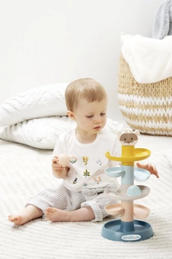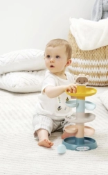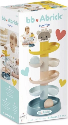 Abrick tårn med bolde er den ideelle legetøj til små børn, der udvikler motorik og koordination. Dette farvemæssigt blide sæt med en bamse på toppen bringer timer af sjov.<\div>