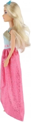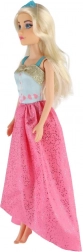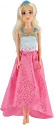 Den lange pink nederdel med glans og kontrastfuld blå overdel giver dukken et unikt look – ideel til bal og modeshow.