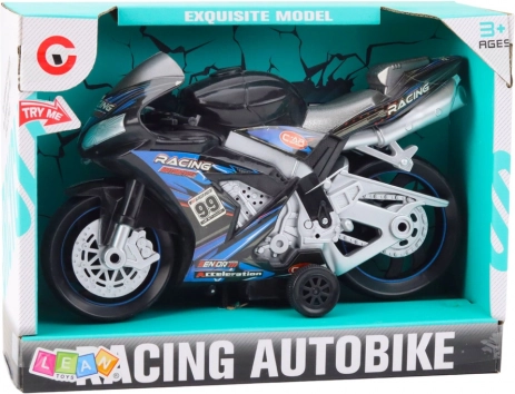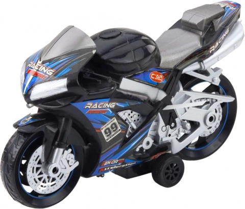 Denne sort-blå motorcykel er lavet af højkvalitets plast, er modstandsdygtig over for skader og har robuste, brede hjul med stabil støtte, hvilket sikrer sikker og komfortabel leg på forskellige overflader. Lys- og lydeffekter kan aktiveres ved at trykke på en knap – realistiske motorlyde og lysglimt fanger børns opmærksomhed og giver legen et realistisk præg.