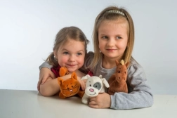 Disse bløde dyr i behagelig plys vil børn forelske sig i med det samme. Når man trykker på maven, udsender de en karakteristisk dyrelyd, som støtter udviklingen af høresansen og fantasien. Takket være den kompakte størrelse på 18–22 cm er de ideelle til små børnehænder og til at tage med på farten.