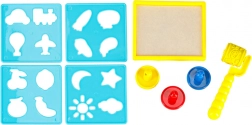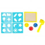 Underholdende vandtegneunderlag til små kunstnere. Sættet indeholder alt, hvad du behøver til kreativ leg uden rod, inklusive vandtuscher, stempler og skabeloner.