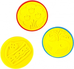 Støt kreativiteten med tre farvede stempler til aftryk og skabeloner til at skabe forskellige former.