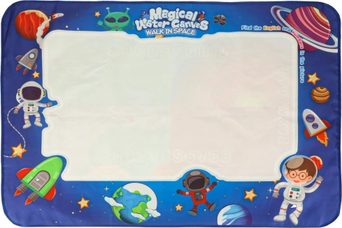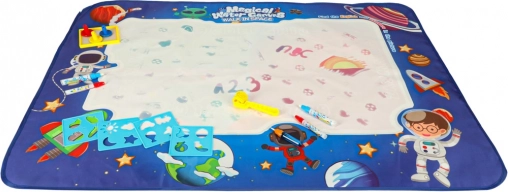 Denne vandmalemåtte tilbyder en sikker og sjov måde at udvikle dine børns kreativitet på. Med en måtte på 90 x 120 cm kan børn skabe rumtema-tegninger og have det sjovt med de medfølgende værktøjer uden rod. Sættet inkluderer også vandtuscher, stempler og skabeloner, som stimulerer deres fantasi.