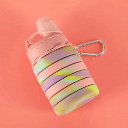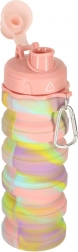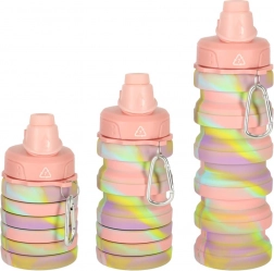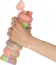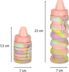 Denne sportsflaske er en fremragende ledsager til din aktive livsstil. Den har justerbar volumen takket være den sammenklappelige konstruktion, som gør det muligt at fylde fra 250 ml op til 500 ml. Den har en lukbar tud, der sikrer behagelig drikning uden spild, og dens attraktive design i en kombination af pink, gul og lilla vil motivere dig til at holde din væskebalance.