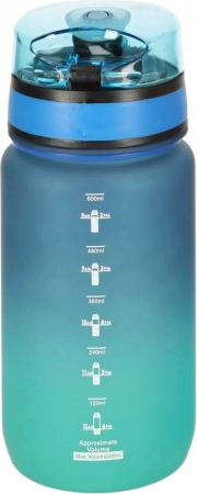Sportsflaske med mundstykke med en kapacitet på 600 ml i en attraktiv blågrøn farve er den ideelle ledsager for enhver atlet. Flasken er udstyret med et behageligt bærehåndtag og et smart åbningssystem.