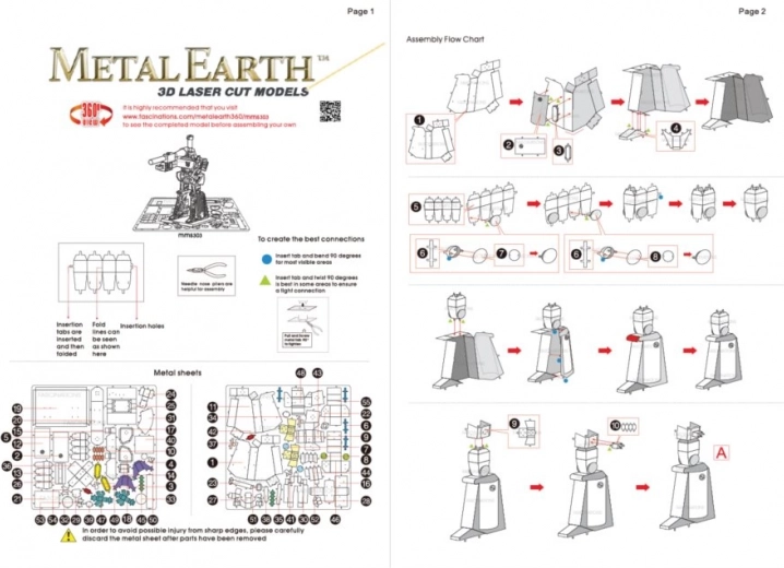 Til samlingen bruger du metalplader med detaljerede dele. Der kræves intet særligt værktøj ud over små tænger.