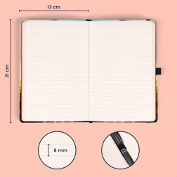 Indeni finder du 172 linjerede sider af højkvalitets cremefarvet papir til alle dine idéer og noter.