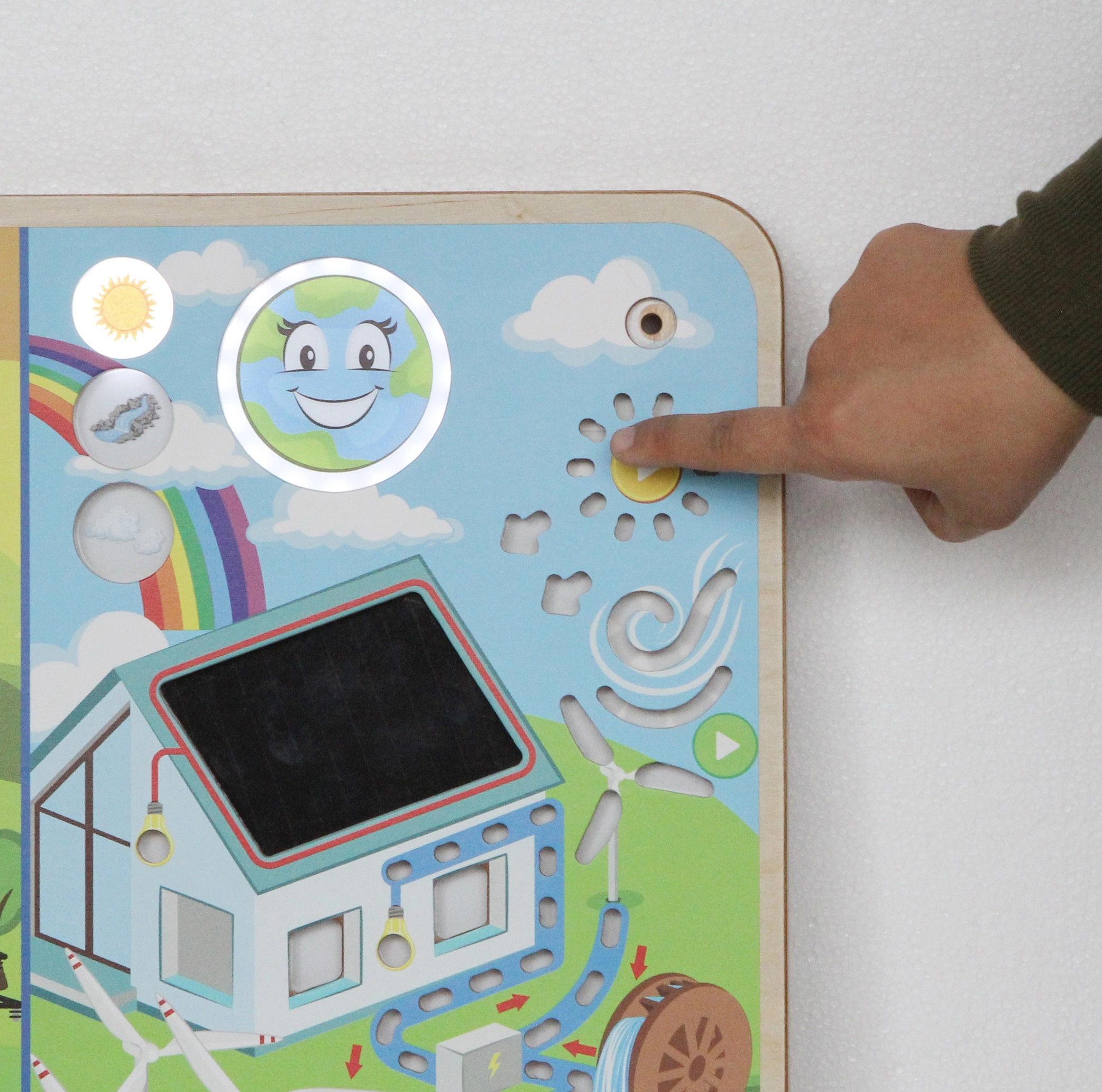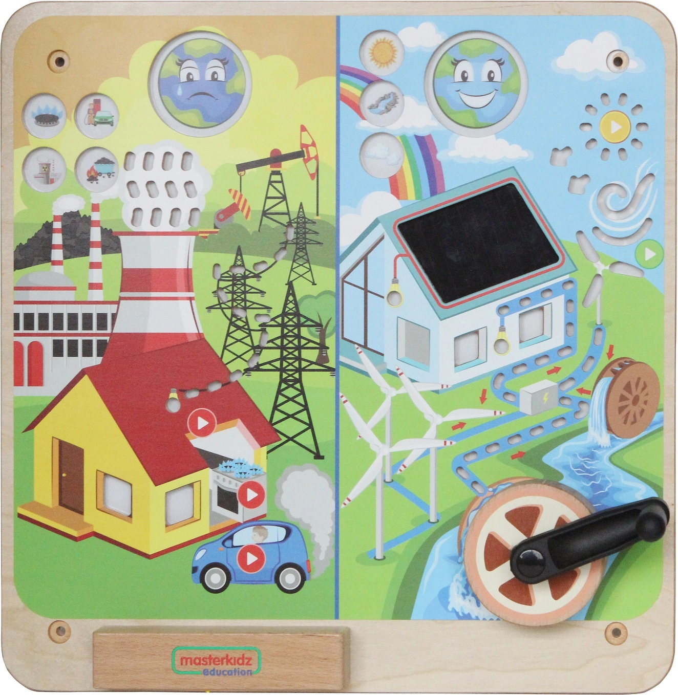 Uddannelsestavlen fra Masterkidz er designet til at hjælpe børn med at forstå, hvordan verden omkring dem fungerer. Børn lærer om forskellene mellem fornybar og ikke-fornybar energi gennem visuelle og interaktive elementer.