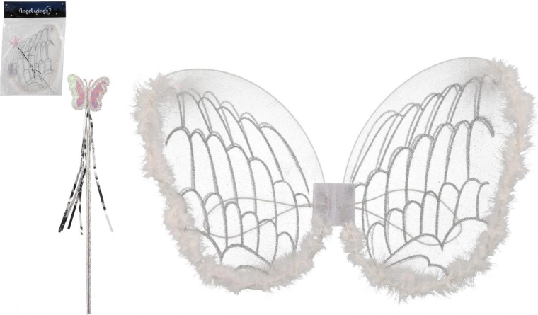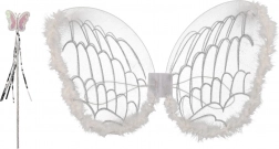 Forvandl dig til en lysende skabning med dette fine sæt til små feer og engle. Indeholder englevinger med blød kant og en matchende tryllestav med sløjfer. Ideel til karneval, fotografering og fantasifuld leg derhjemme. Let konstruktion og elastiske remme for behagelig brug. Velegnet til børn fra 3 år.