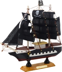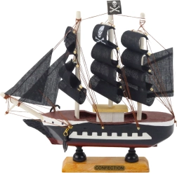 Denne miniaturiserede model af et piratskib er fremstillet i træ og afsluttet i hånden med fokus på symmetri, proportioner og realistiske detaljer såsom rig, udsmykket agterstavn og kranie på masten. Den står på en stabil base med en beskrivende plade, hvilket gør den ideel som dekoration i bogreolen, på kontoret eller i den private samling. Takket være de kompakte mål kan den også placeres, hvor pladsen er begrænset, og den tilfører et strejf af maritimt eventyr og tiltrækker opmærksomhed med sin kontrastfulde farvesammensætning.
