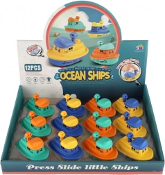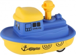 Sæt gang i legen med ét tryk! “Tryk og kør”-båden suser afsted, når skorstenen trykkes ned, takket være det indbyggede svinghjul. Den kompakte størrelse passer i en lille hånd, og børn kan nemt styre den.