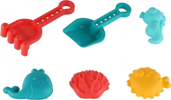 I pakken finder du alt, hvad børn behøver for at skabe: skovl til at fylde, rive til at glatte og forme samt farverige forme til sjove figurer. Sættet kan bruges i sandkassen, på stranden og endda i badekarret.
