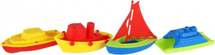 Dette praktiske sæt indeholder fire plastbåde i forskellige former og farver, inklusive en sejlbåd og motorbåde. Bådene er lette, holdbare og passer godt i små børnehænder. Takket være den flydende konstruktion er de perfekte til badekar og børnepool.