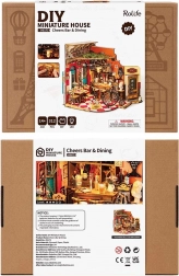 Miniature husmodel Bar og bistro Cheers transporterer dig til en nostalgisk europæisk stil. Modellen indeholder: