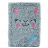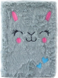 Blødt notes i linje med broderet motiv af en grå kanin er et charmerende og nyttigt produkt, der imponerer ved første øjekast. Det bløde, plyssede omslag i dæmpet grå er dekoreret med broderi af kaninens ansigt med lyserøde ører og kinder samt to blå hjerter, der tilføjer produktet charme og barnlig glæde.