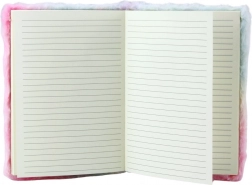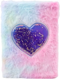 Nyd de smukke farver og det bløde plysmateriale, som notesens omslag er dækket med. Hovedtrækket er den gennemsigtige hjerteformede lomme fyldt med glitter, der frit svømmer og giver en unik interaktiv dekoration.