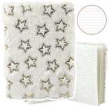 Vi præsenterer en notesbog, der ikke kun opfylder praktiske behov, men også tilfører dine noter charme. Omslaget er af centralhvid plyss med dekoration i form af gyldne stjerner, som skaber en perfekt kontrast for et elegant look. Denne luksuriøse notesbog vil glæde både skole- og personlige noter. Den har 80 linjerede ark, som giver rigelig plads til dine tanker og kreativitet.