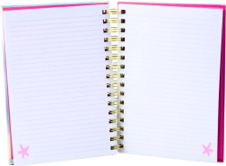 Indersiderne har 90 sider med lyserøde linjer, hvilket er ideelt til skole-noter, kreativ skrivning eller dagbog. Den stærke spiralryg gør det nemt at åbne og folde siderne om. A5-formatet er praktisk til daglig brug – i skole, derhjemme eller på arbejdet.