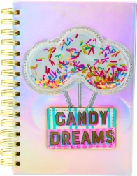 Candy Dreams notesbog er et unikt produkt, der kombinerer funktionalitet med et moderne og originalt design. Det holografiske omslag prydes af en stor applikation formet som en sky med farvede plastikkonfetter indeni, hvilket giver notesbogen et magisk udseende.