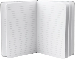 Indeni finder du 80 linjerede sider til daglig planlægning, dagbogsskrivning eller noter til arbejde eller skole. Notesbogen har en elastisk rem mod utilsigtet åbning og et bogmærkebånd som praktisk markør.