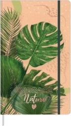 Elegant notesbog med tropisk Monstera-bladmotiv er et fremragende valg til daglige noter, opgaver og planer. Det hårde beige og grønne omslag med teksten “Embrace Nature” giver en personlig stil.
