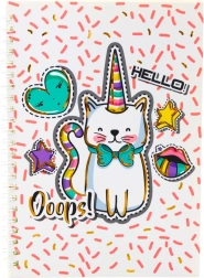 Denne notesbog med et eventyrligt katte-enhjørningstema er velegnet både til skolen og til hjemmebrug, skrivning eller som børnedagbog. Spiralryggen gør det nemt at åbne siderne og skrive behageligt på hver side. Dens kompakte A5-format er ideelt til at have med i rygsæk, taske eller skuffe.