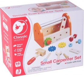 Kreativt træværktøjssæt til små reparatører indeholder 16 stykker robust værktøj i en praktisk træboks. Understøtter finmotorik, teknisk forståelse og færdigheder. Fremstillet af kvalitetstræ, ideelt til børn fra 3 år.