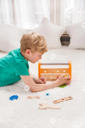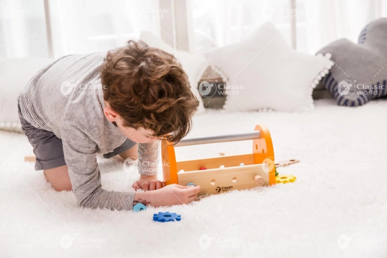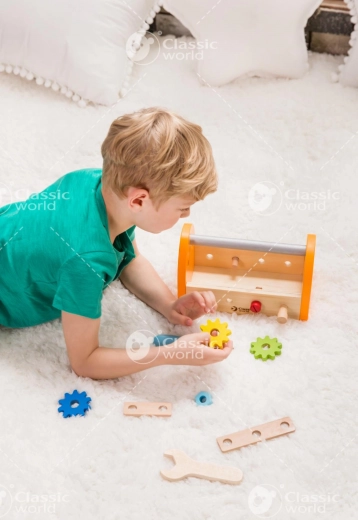 Dette træværktøjssæt vil glæde alle små gør-det-selv’er, der gerne vil hjælpe derhjemme. I den solide træboks finder du alt, der er nødvendigt til sikker og legende “reparation”. Legetøjet udvikler hånd-øje-koordination, fremmer kreativitet og lærer børn grundlæggende håndværksfærdigheder.
