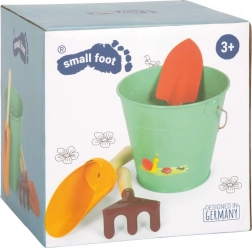 Værktøjerne omfatter to skovle og en rive, ideelle til at plante, grave eller bygge sandslotte. Metals panden er perfekt til at transportere vand, sand eller jord. Børn kan nemt tage sættet med overalt – i haven, i sandkassen og på stranden.