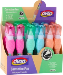 Den hurtigttørrende hvide væske dækker effektivt både blæk og kuglepen. Et volumen på 7 ml sikrer lang holdbarhed og effektiv dækning. Pakken indeholder 24 stk., farve vælges tilfældigt.