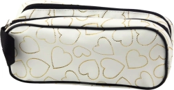 Dette hvide penalhus med gyldne hjerter giver fremragende organisering takket være to adskilte rum til opbevaring af dine skriveredskaber. Der er god plads til ikke blot kuglepenne og blyanter, men også linealer, viskelædere og overstregningstuscher. De separate rum sikrer bedre overblik og orden.