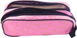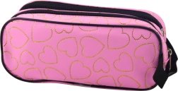 Penalhuset i rosa med motiv af gyldne hjerter tilbyder en moderne og praktisk løsning for studerende, der vil have orden i deres ting. To separate rum hjælper med at holde overblik og orden.