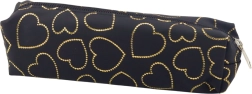 Stilfuldt og praktisk penalhus i sort med gyldne hjerter, ideelt til skole, universitet eller kontor. Dets kompakte format og lette konstruktion gør det nemt at opbevare nødvendige skriveredskaber.