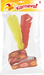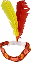 Vi præsenterer en smuk indiansk hovedpynt, ideel til enhver, der elsker eventyr og kan lide at lege indianer. Denne hovedpynt er udsmykket med farverige fjer og blomsterbroderier, som giver dit kostume et unikt præg.