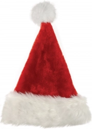 Den klassiske røde julehat med hvid kant og blødt plys-materiale er et ideelt tilbehør til juletiden.