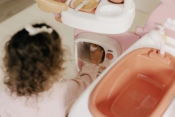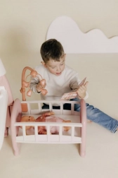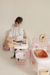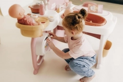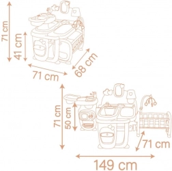 Dette unikke legecenter tilbyder tre legezoner – køkken, badeværelse og soveværelse – som giver dit barn alt, hvad der behøves for realistisk leg.