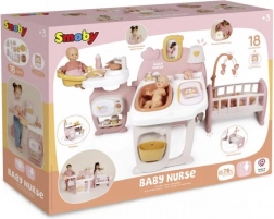 Badeværelset inkluderer et aftageligt badekar og et puslebord, mens køkkenet indeholder en vask med ikke-fungerende armatur, kogeplade og mikrobølgeovn med opbevaringshylder. Soveværelset er udstyret med en dukkeseng og en drejende uro med fosforescerende lampe.