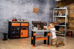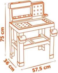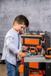 Realistisk børneværkstedsbænk fra Smoby med 83 dele tilbehør, inklusive 7 værktøjer og et køretøj. Meget stabil med rigelig plads til børns kreativitet. Et fremragende valg til børn, der leger rigtige håndværkere.