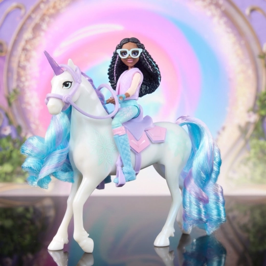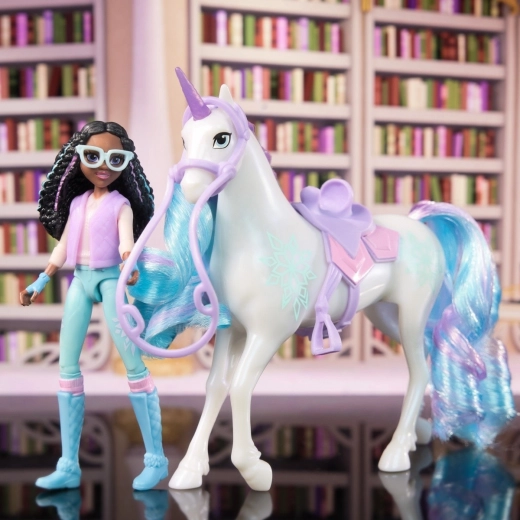Fejr venskab og magi med sættet Ava og Listka fra Enhjørningeakademiet, inspireret af den populære animerede NETFLIX-serie og børnebøgerne. Dukken Ava er 11 cm høj, detaljeret udformet og har syv bevægelige led for dynamiske positurer. Enhjørningen Listka måler 13 cm og er udsmykket med det særlige Plantemagi-mærke samt en kæmmet lilla og turkis man og hale (børste medfølger). Sæt Ava på ryggen af Listka og tag på eventyr! Ava kan sidde sikkert takket være aftagelige tøjler og sadel. Oplev flere figurer fra Enhjørningeakademiet, såsom Sophia, Layla, Isabel og Valentina. Disse legetøj er den perfekte gave til børn, der elsker enhjørninger, dukker og kreativ leg.